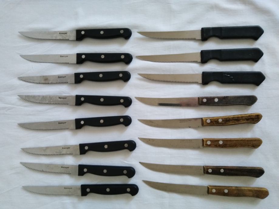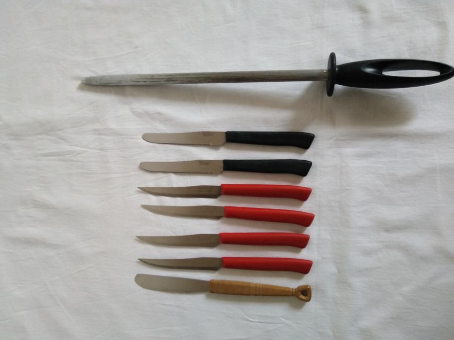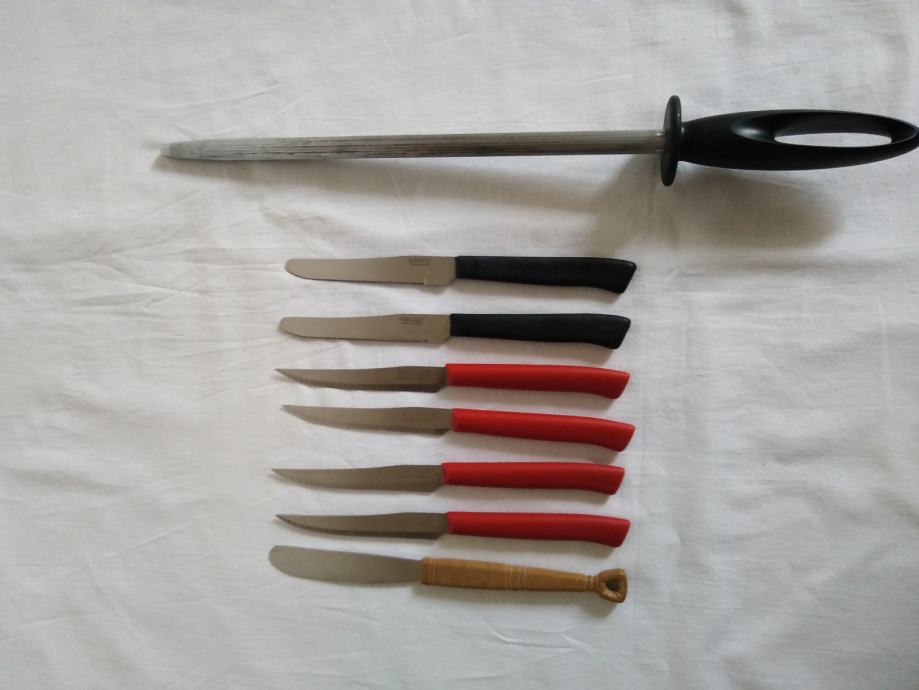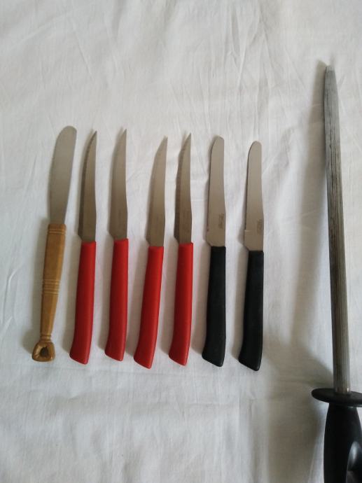 3. Noževi sa odrezak sa plastičnom ručkom i oštrač noževa
