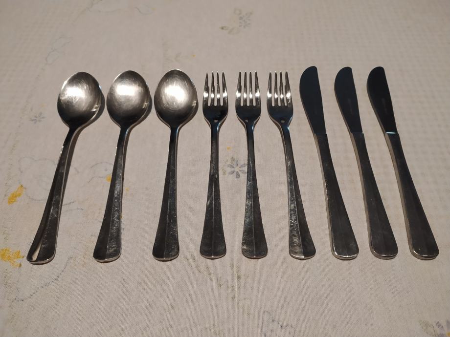 Prodajem pribor za jelo za tri osobe od inox-a (Proizvođač: FAGIX Inox Argent). Sastoji se od 3 žlice, 3 vilice i 3 noža (ukupno 9 komada).