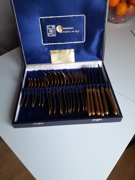 Pozlaćeni pribor za jelo 24k u originalnoj kutiji prodajem.Pribor je za 6 osoba.