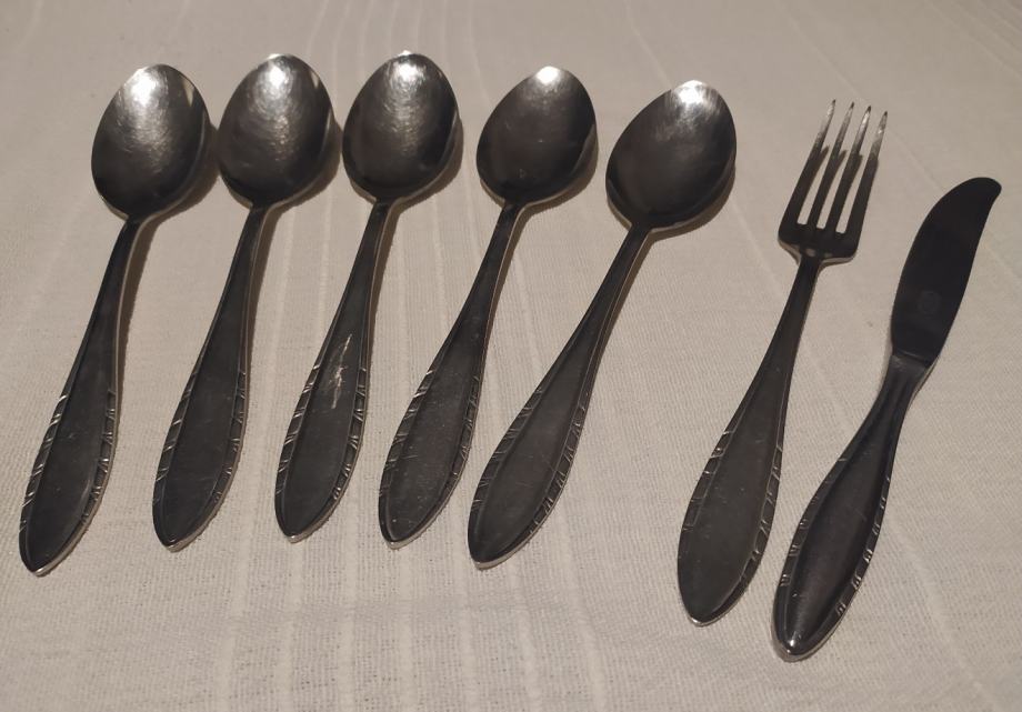 - pet žlica, jedna vilica, jedan nož proizvođača "Rad" Beograd - ukupno: 7 kom.;