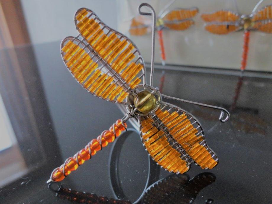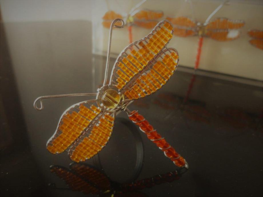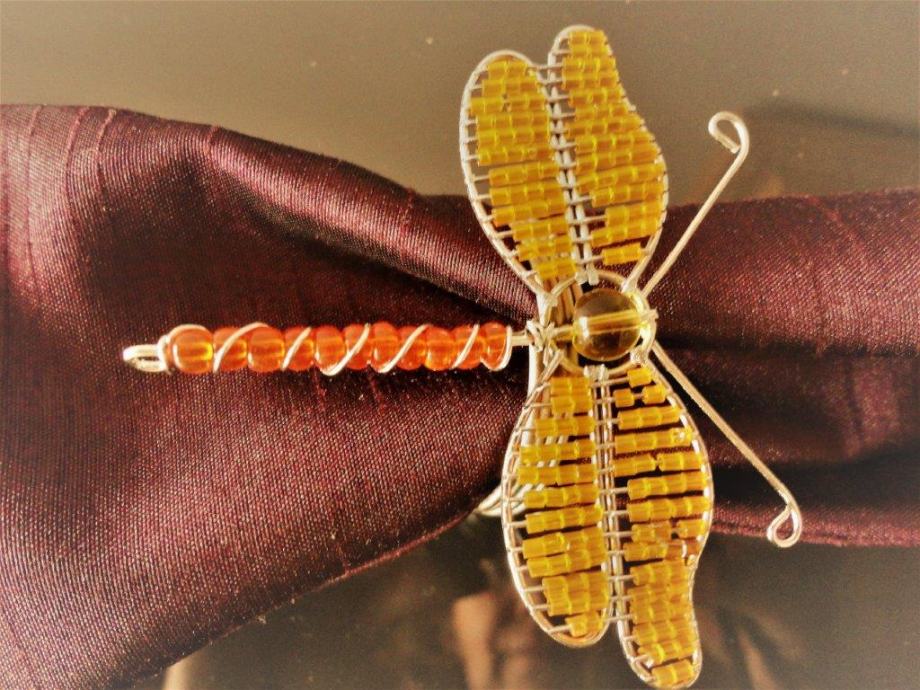 kombinacija srebrnog metala i amber-narandžastih perlica