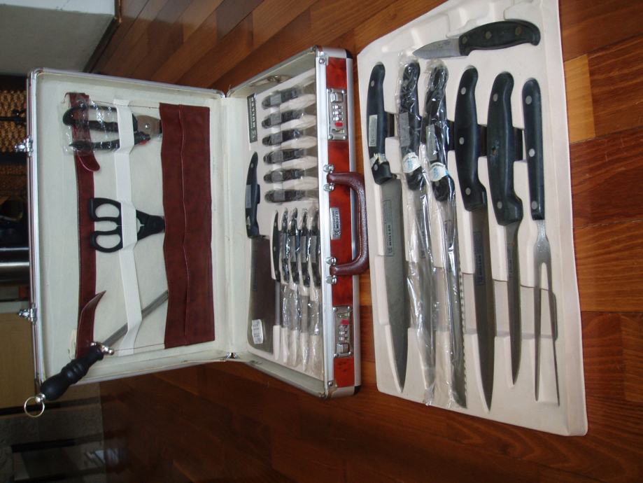 Originalni set noževa Kochtopfhaus Muller u koferu. Nedostaje samo jedan nož. Većina pribora nikad nije korištena, a samo nekoliko komada korišteno je vrlo malo.