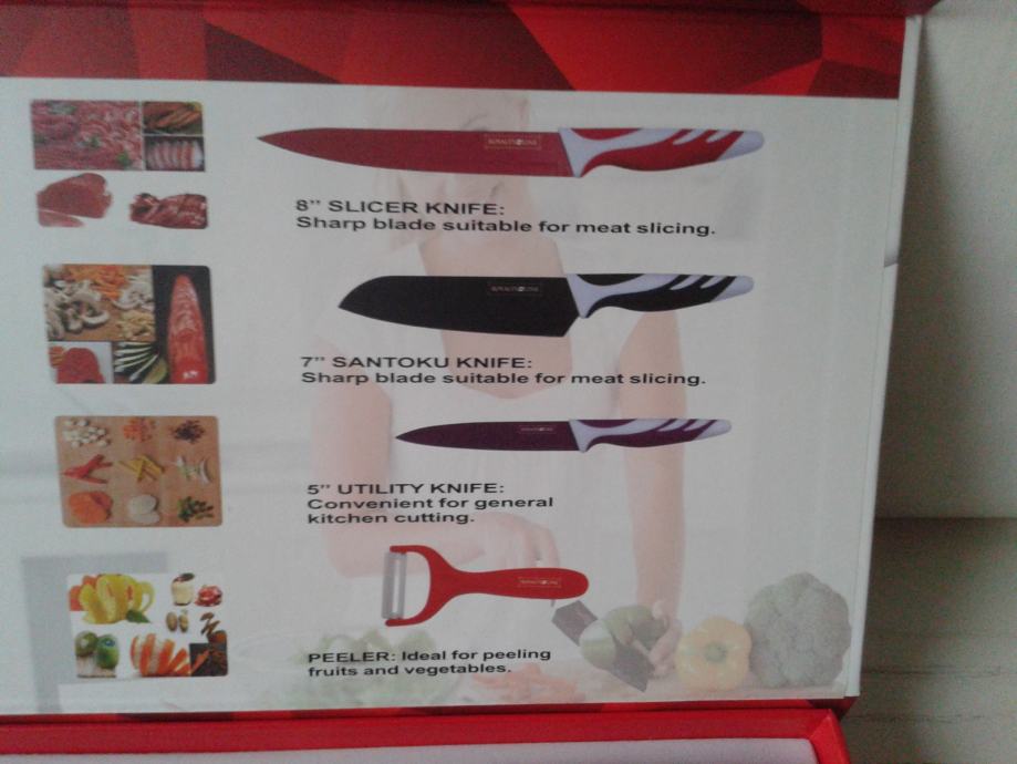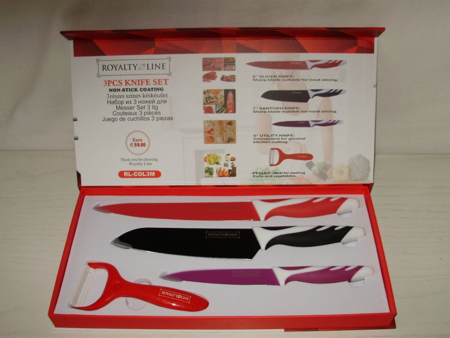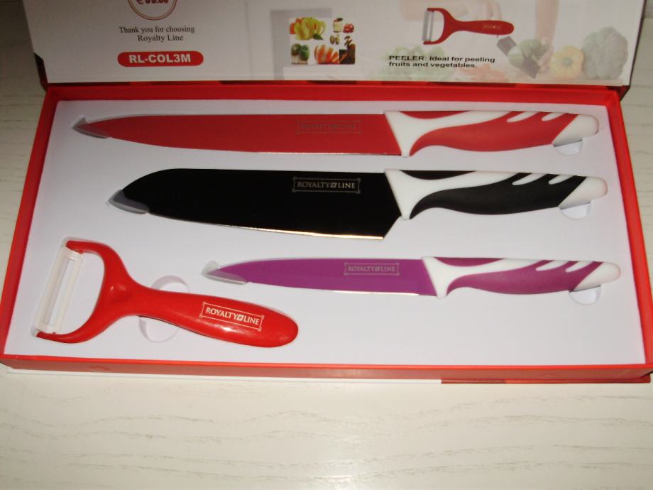 Komplet se sastoji od 3 noža i keramičkog guljača za povrće