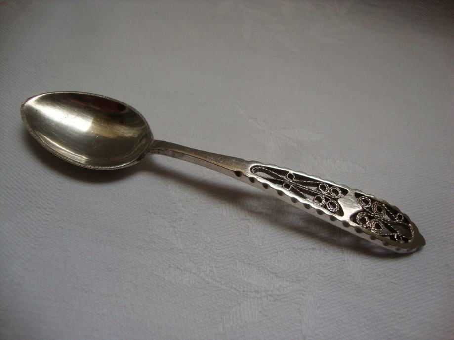 Vrlo stara srebrna žlicica za čaj kavu rucni rad od srebra