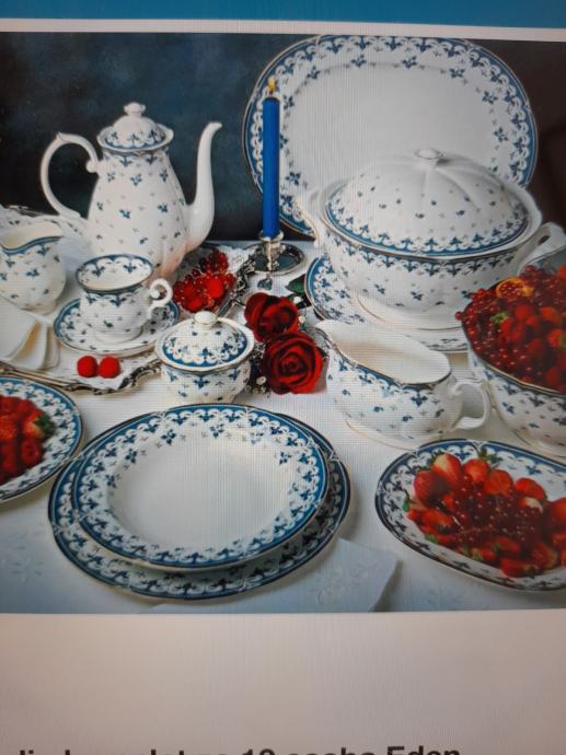 ZEPTER PORCULANSKI SERVIS ZA JELO ZA 6 OSOBA, IZ KOLEKCIJE "EDEN", ZA RUČAVANJE I KAVU (UKUPNO 39 KOMADA), POTPUNO NOVI, NIKAD KORIŠTENI, PRODAJEM. TO JE EKSKLUZIVNA, RUČNO RAĐENA KOLEKCIJA PORCULANA SA RUBOVIMA OD POZLATE. TRENUTNA CIJENA U MALOPRODAJI "ZEPTER" JE 14.620,00 KN.