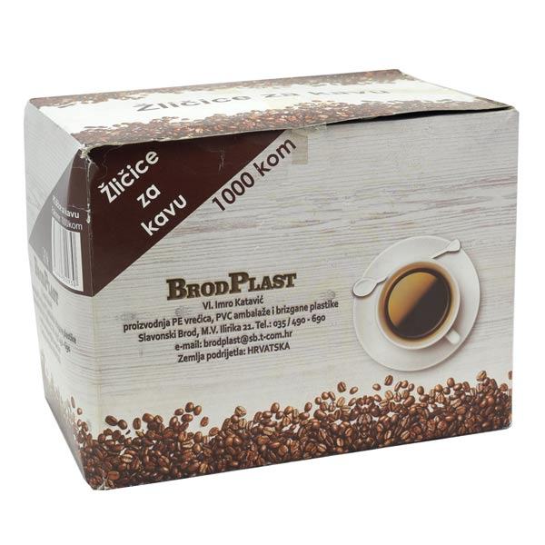Male tvrde plastične žlice za crnu kavu proizvedene od bio razgradive plastike. Dužina žlice: 9.5 cm. Koriste se za posluživanje kave u ugostiteljskim objektima. U paketu se nalazi 1.000 žlica.