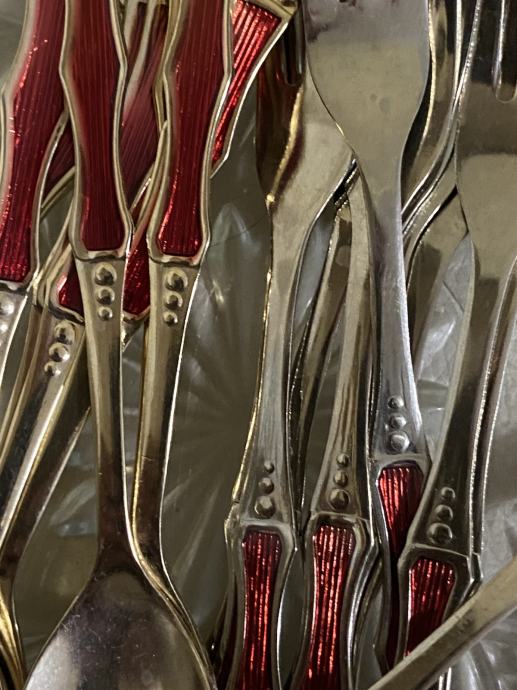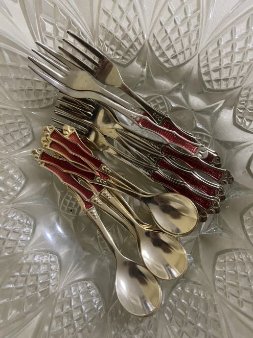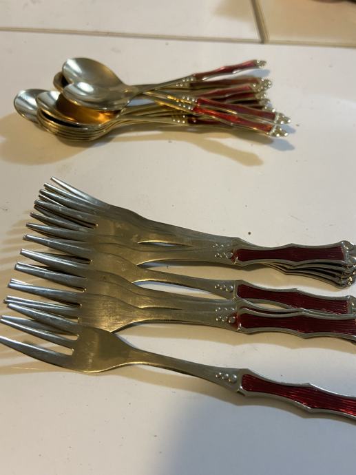 Žlice vilice za kolače, desert i sladoled male crveni sedef beštek