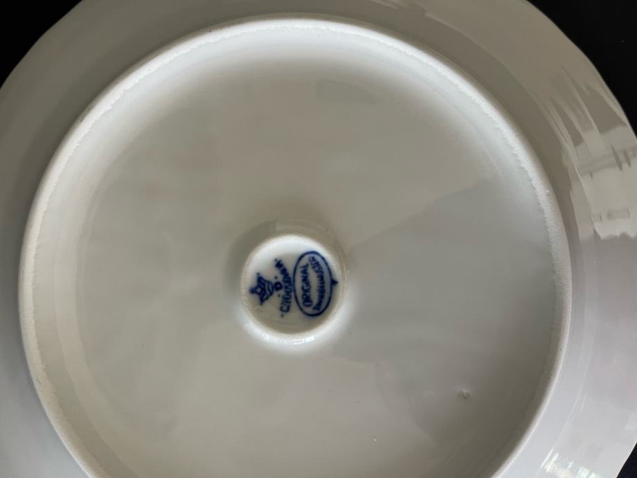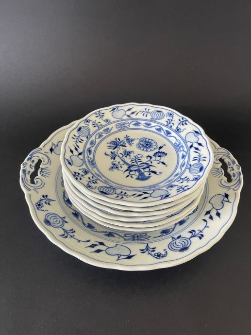 Set se sastoji od 6 desertnih tanjura i jednog tanjura za posluživanje s ručkicama.