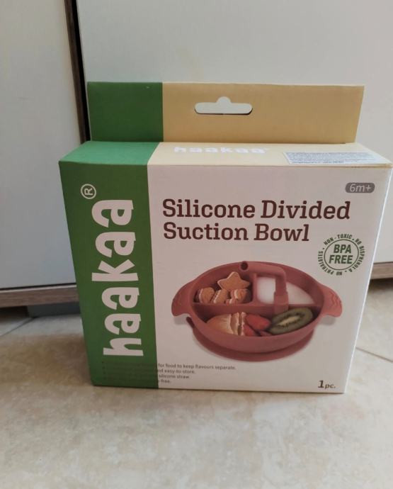 Silikonska posudica s vakuumskim dnom Haakaa idealna je za izbirljive mališane jer ima tri pregrade koje omogućuju razdvajanje hrane i jednostavno hranjenje! Napravljena je od 100% silikona za prehrambene namjene, čineći je sigurnim izborom za najmlađe, budući da ne ispušta toksine u hranu, za razliku od plastike. Naša posudica ima snažno vakuumsko dno koje se pripija uz stol, sprječavajući prevrtanje posude i neugodne nerede!