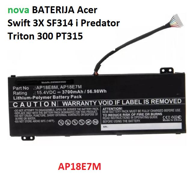 AP18E7M nova BATERIJA Acer Swift 3X SF314 i Predator Triton 300 PT315