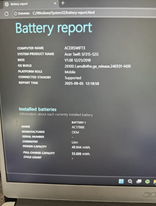 • Kapacitet: 48.944 mWh (dizajn) / 33.698 mWh (trenutno)