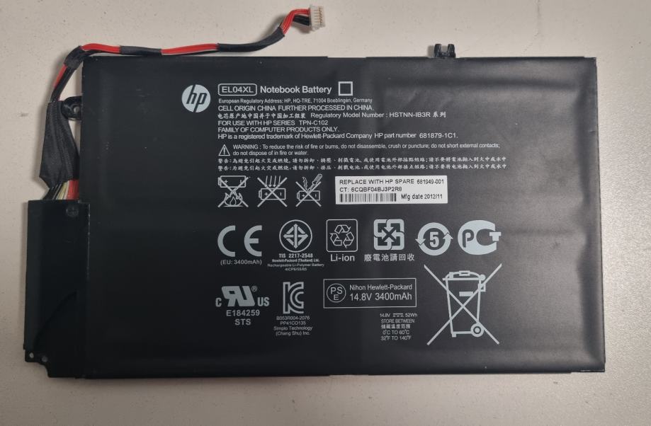 HP ENVY Baterija EL04XL / TPN-C102 14.8V 3400mAh , za sve HP ENVY 4 i HP ENVY TOUCHSMART 4 laptope , baterija neispitana - 15€
