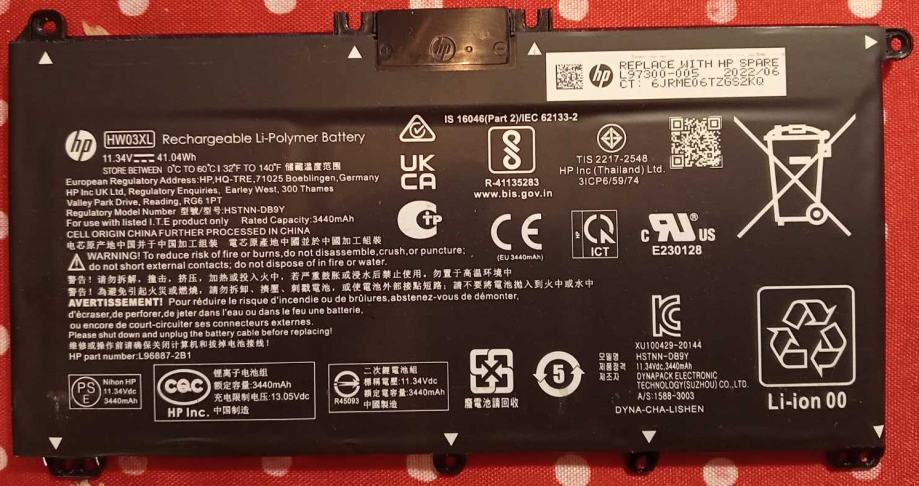 Kompatibilna s određenim HP laptop modelima (kupac neka provjeri kompatibilnost prema oznaci HW03XL ili HP part numberu).