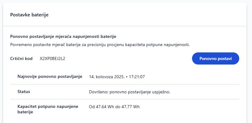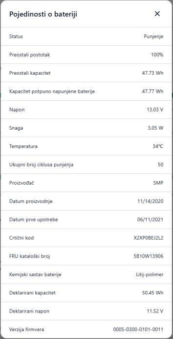Ispravna originalna baterija, kapacitet odličan, 47Wh od originalnih 50Wh. Rezultat testa priložen u slike.