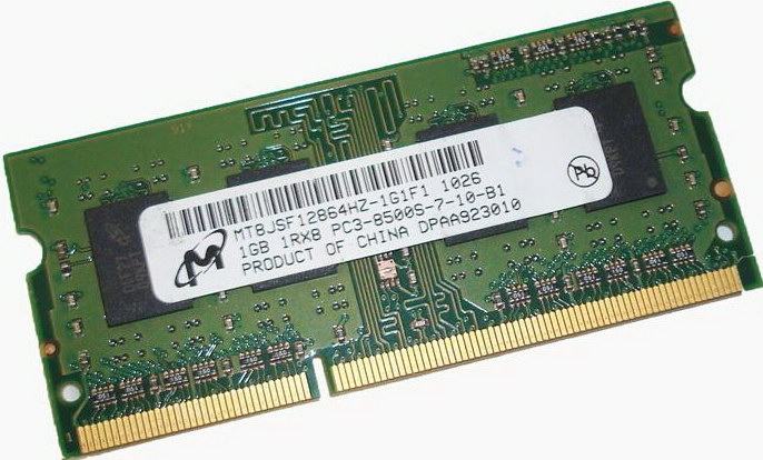 1GB Micron 1066mhz 204pina PC3-8500 CL7 128x8 DDR3-1066 1Rx8 1.5V MT8JSF12864HZ-1G1F1
