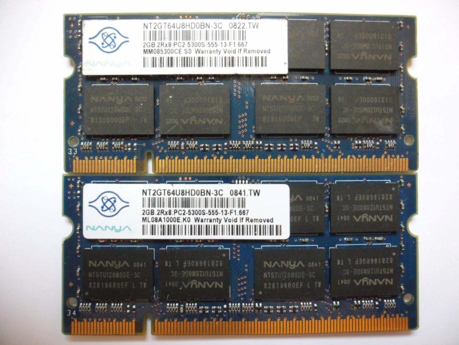 2x2GB(4GB) NANYA NT2GT64U8HD0BN-3C PC2-5300 667mhz DDR2 SODIMM