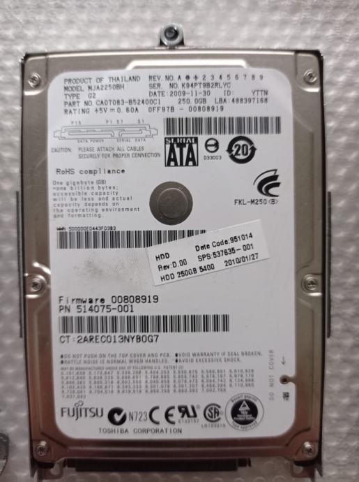 HDD Fujitsu / Toshiba MJA2250BH 250GB 5.4K 2.5 Inch SATA Hard Drive