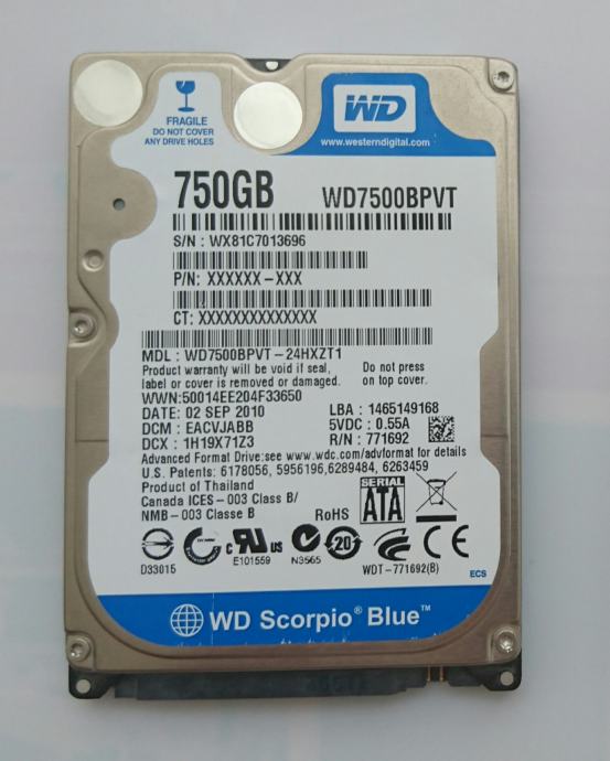 HDD Westerndigital 750gb 2.5" WD7500BPVT, jamstvo