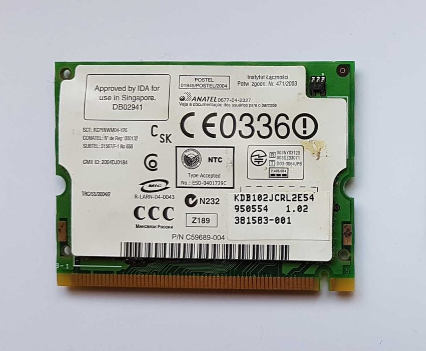 802.11 b/g AW-GE780 Wi-Fi PCI Express Mini Card