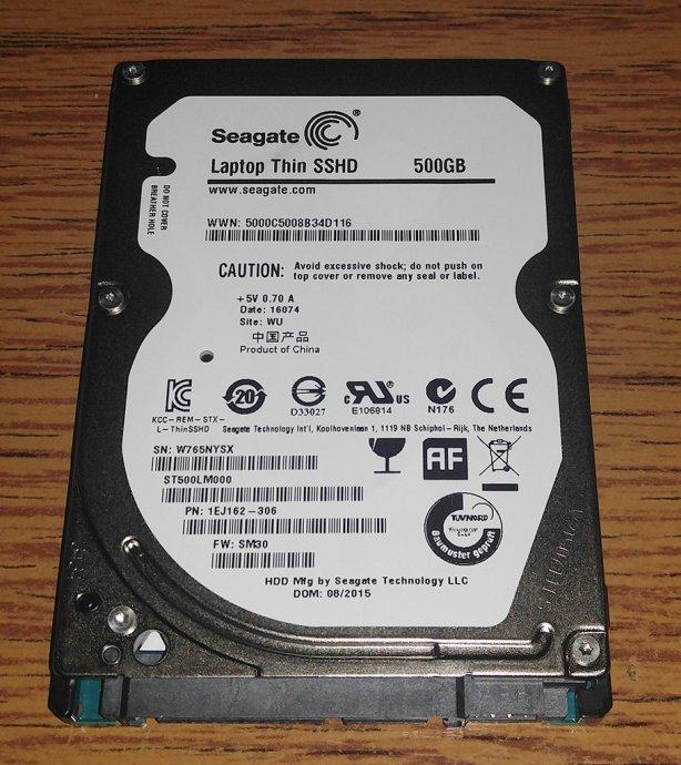 Seagate Laptop Thin 2.5" SSHD (Solid State Hybrid Drive) 500GB sa 8GB NAND memorije koja ubrzava najčešće pokretane aplikacije. Jako malo korišten i bez bad sectora.