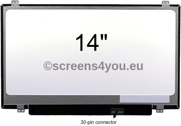 Nudimo Vam novi slim ekran AUO B140XTN0.2E dijagonale 14" i LED tipa. Ekran ima rezoluciju 1366X768 (WXGA HD) . Konektor za priključivanje kabla na ekran je 30-pinski. Ekran ima sa gornje i doljnje svoje strane nosače za pričvršćivanje ekrana sa šarafima.