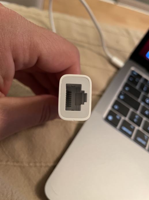 Opis proizvođača: "The Apple Thunderbolt to Gigabit Ethernet Adapter lets you easily connect to a high-performance Gigabit Ethernet network. Small and compact, it connects to the Thunderbolt port on your Mac computer and provides an RJ-45 port that supports 10/100/1000BASE-T networks."