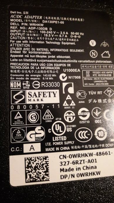 2. Originalni DELL punjač za docking DA130PE1-00 - 19,5V; 130W!