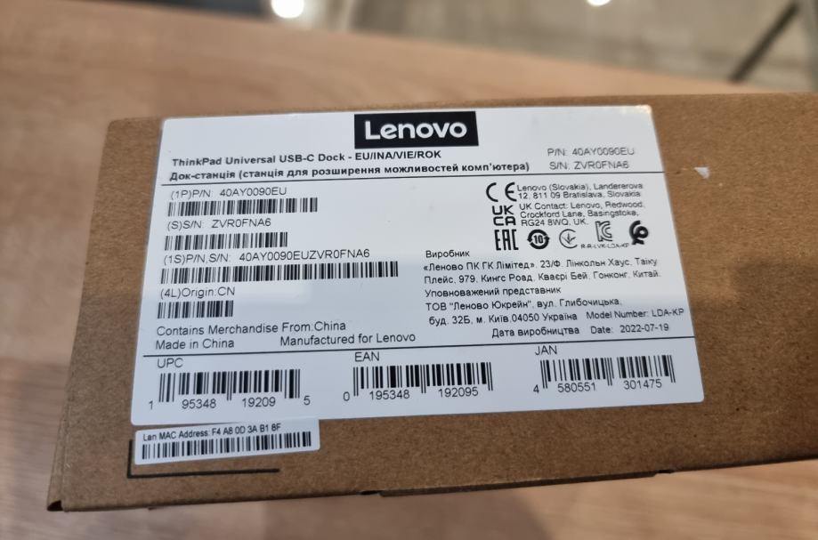 Lenovo ThinkPad Universal USB-C Dock, 40AY0090EU *DO 24 RATE* NOVO! R1