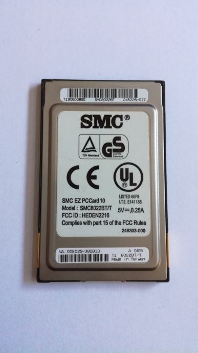 SMC EZ PC Card 10 Ethernet Network Card SMC8022BT/T PCMCIA