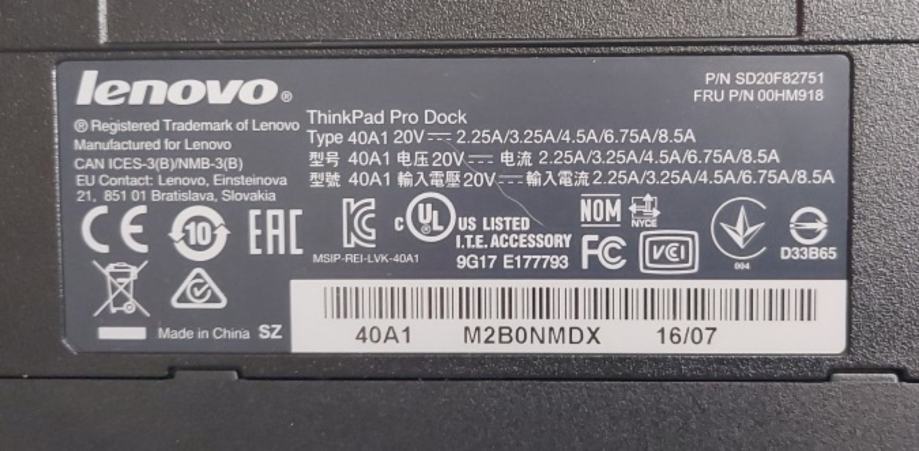 Thinkpad Pro Dock modela 40A1 za kompatibilne laptope: ThinkPad L440 i L540, ThinkPad X240, ThinkPad T540p, ThinkPad T440 sa integriranim grafikama, ThinkPad T440p, i ThinkPad T440s s integriranim grafikama.