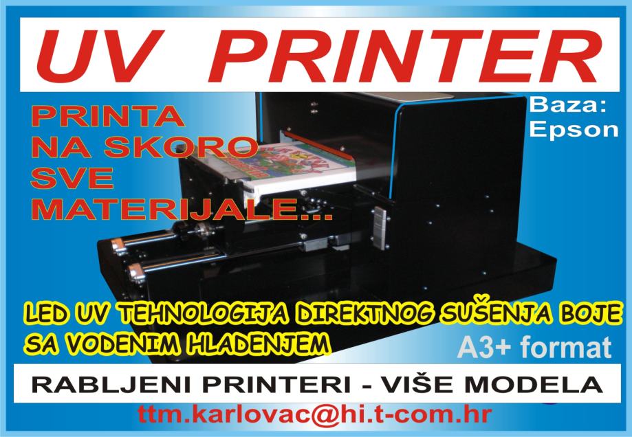 Rabljeni, generalno uređeni UV printeri na bazi Epson modela, sa novim ugrađenim djelovima......