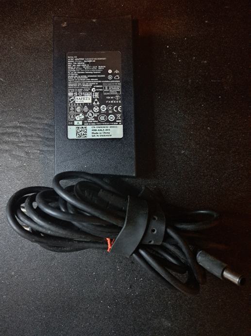 Punjač za laptop Dell sa naponskim kablom u kompletu.