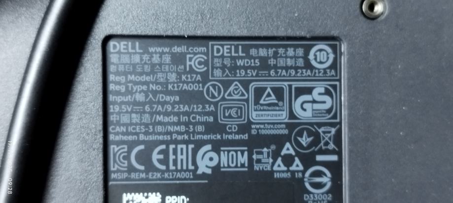 JEDINICA Dell WD15 K17A USB-C priključna stanica K17A001 Dock - 130W AC adapter