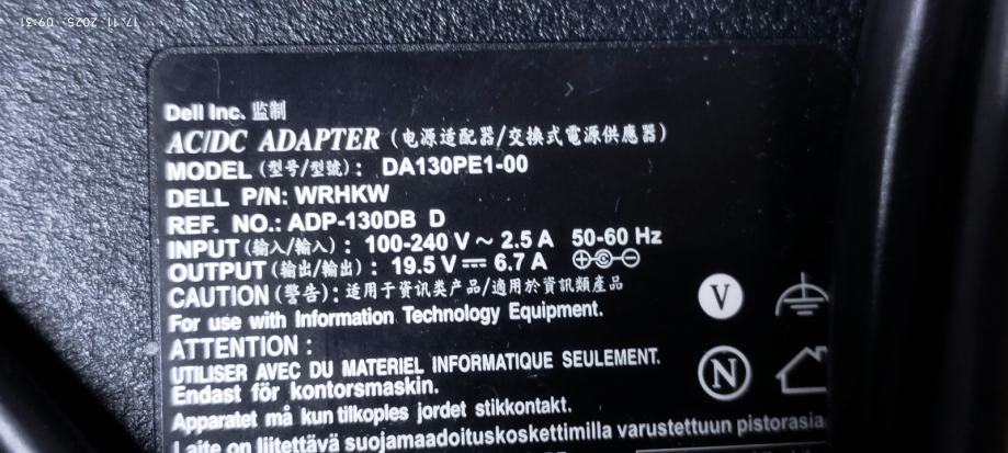 Dell WD15 K17A USB-C priključna stanica K17A001 Dock-130W AC