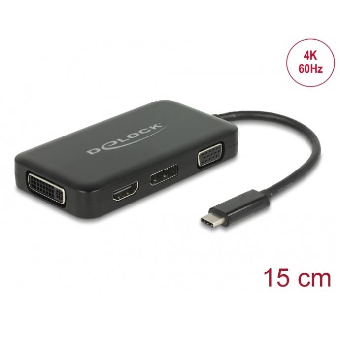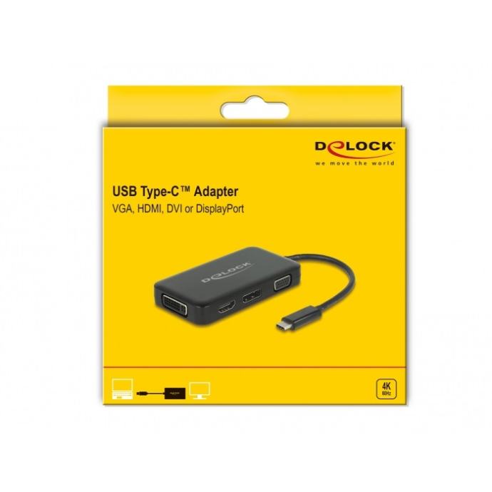 Delock Adapter USB Type-C™ male > VGA / HDMI / DVI / DisplayPort female black
