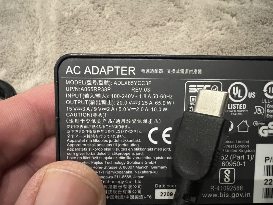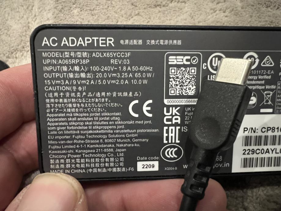 Fujitsu / Lenovo USB-C punjač 65W – NOVO, nikad korišteno, original