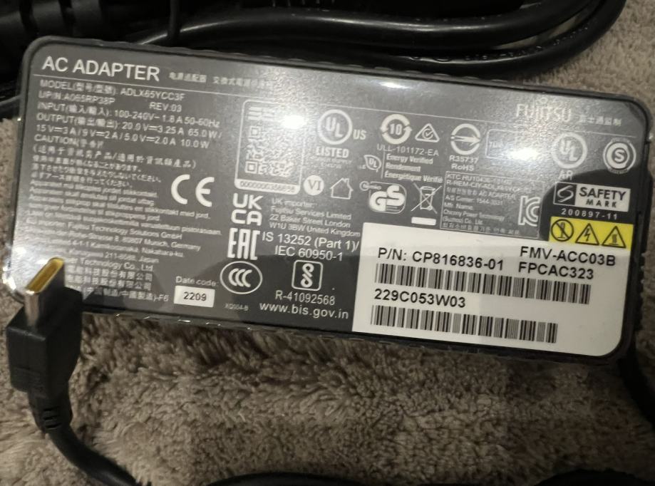 FUJITSU AC-ADAPTER 19V 65W 3P, TP-C UKCA,TCO9 LC (CP816836-XX)