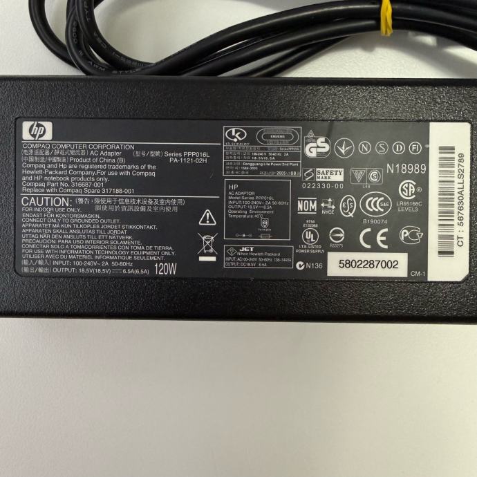 OUTPUT: 18.5 VDC, 6.5 A, 120 W