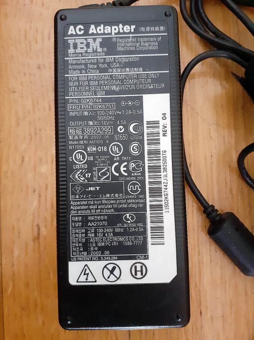Prodajem originalni i potpuno ispravni punjač / adapter za IBM laptope.