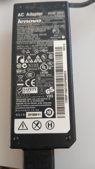 Lenovo adapter za laptop prodajem za 10 eura. Napon je 20 v, snaga 65 w ili 3,5 a. Utikač je žuti sa iglicom u sredini. 097 759 5554