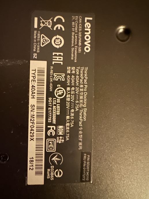 Thinkpad pro docking station type 40ah.