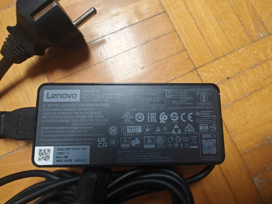 Prodajem originalni Lenovo punjač snage 65W s USB-C priključkom za prijenosna računala. Punjač je u dobrom stanju s urednim kabelima i originalnom oznakom proizvođača. Idealan je za vlasnike Lenovo laptopa koji trebaju zamjenski ili dodatni adapter za napajanje.
