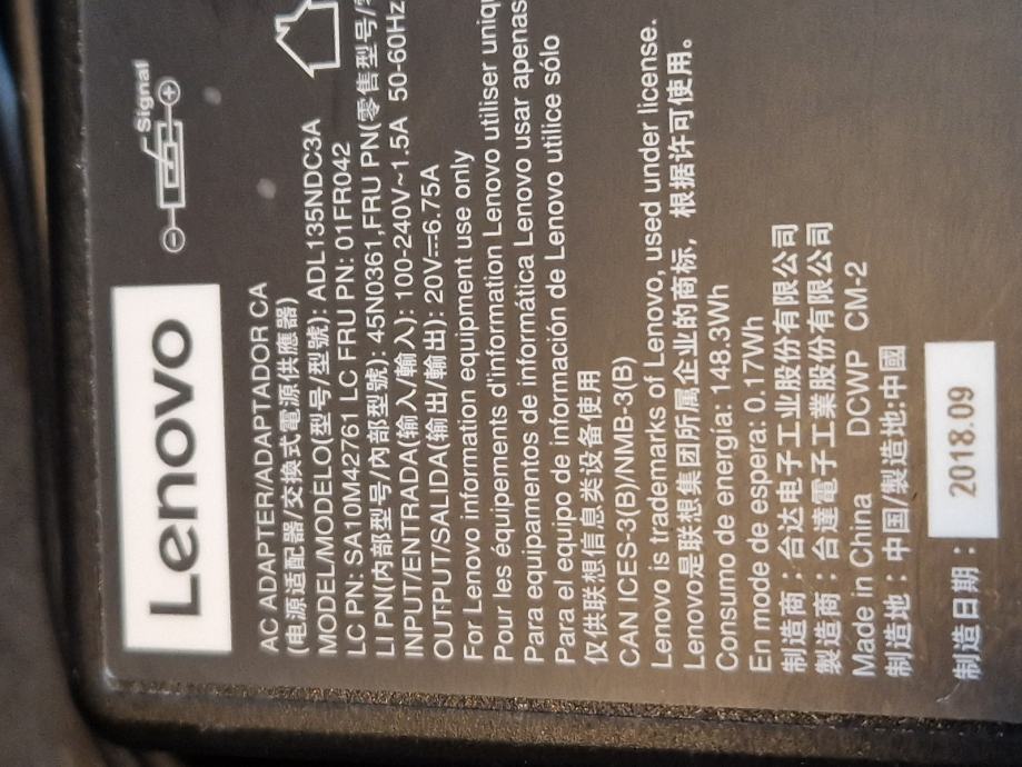 Lenovo punjač za laptop 20V 6,75A