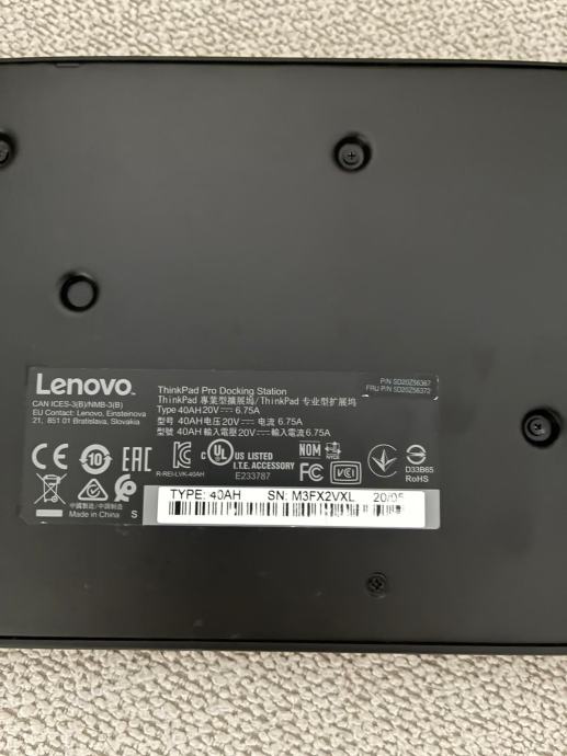 Prodajem originalnu Lenovo ThinkPad Pro Docking Station, model 40AH20V, snage 6.75 A.