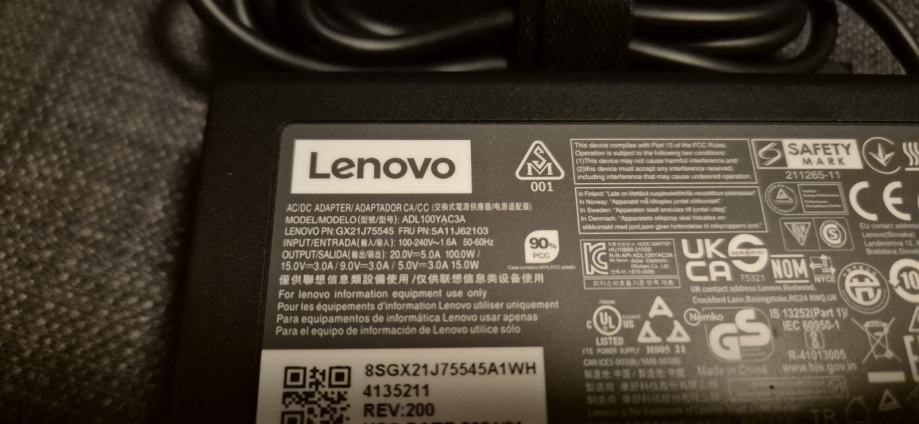Prodajem gore navedeni original Lenovo punjač od 100 W u dobrom i ispravnom stanju.