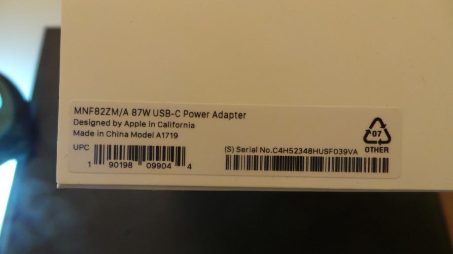 Macbook Power adapter 87W USB C priključak A1719