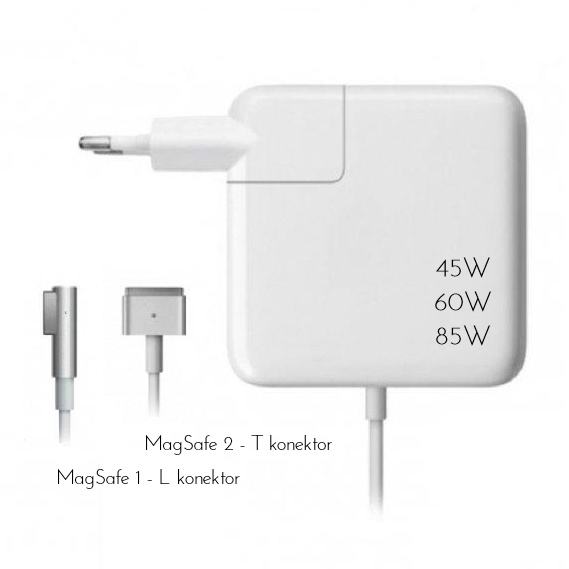 U ponudi vrhunski zamjenski MagSafe 1 i MagSafe 2 Power Adapter - punjači za MacBook, MacBook Air i MacBook Pro 11", 13", 15" i 17" i modele se Retina zaslonom. Oba modela u verzijama 45W, 60W i 85W. Punjači su namijenjeni našem tržištu - EU utičnica i napon 220V. L i T konektor.