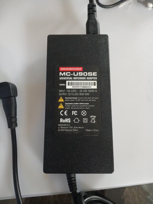 Modecom punjac za laptop prodajem za 15 eura. Automatski se prilagodjava laptopu sa voltazom koja treba. Snaga je 90 w