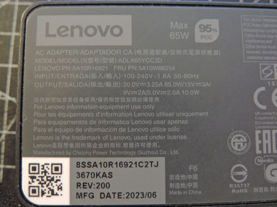 LENOVO ADLX65YCC3D 65W USB Tip C