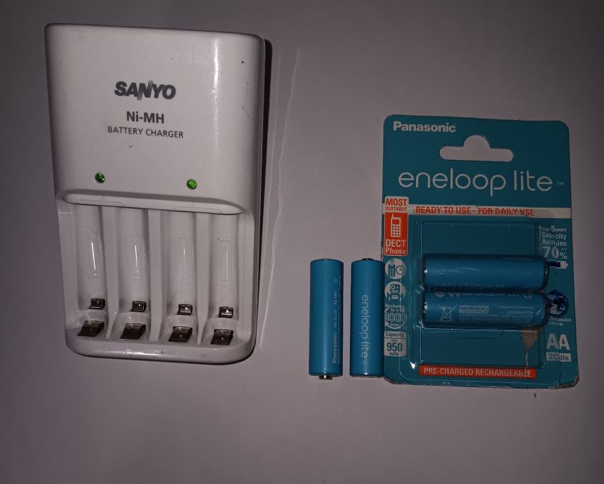 Prodajem punjač i 4 punjive baterije,podaci na slici,cj.25 eu,i ispravljac,univerzalni,cj.20 eu